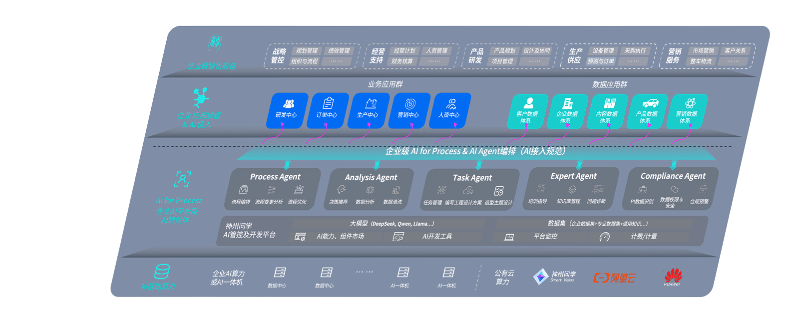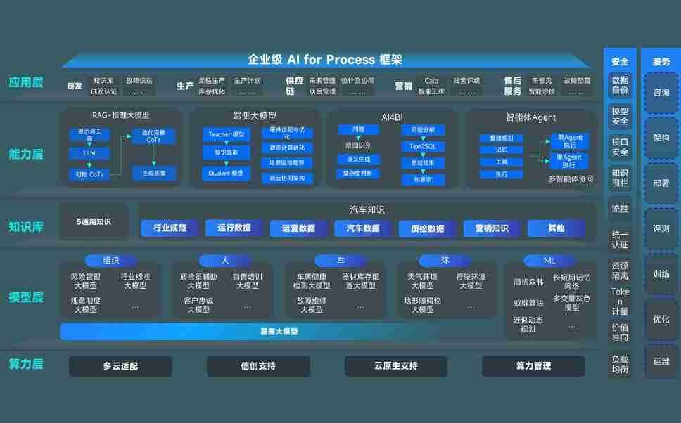 端到端的一站式AI工作空间深度融合了从企业战略规划到日常经营的全流程业务板块,,,,定向解决车企内部领域多、、部门多、、链条长、、场景碎片化等难题,,,支持车企快速构建以AI为核心的生产力写作体系,,,实现任务执行与AI能力的无缝集成与交互